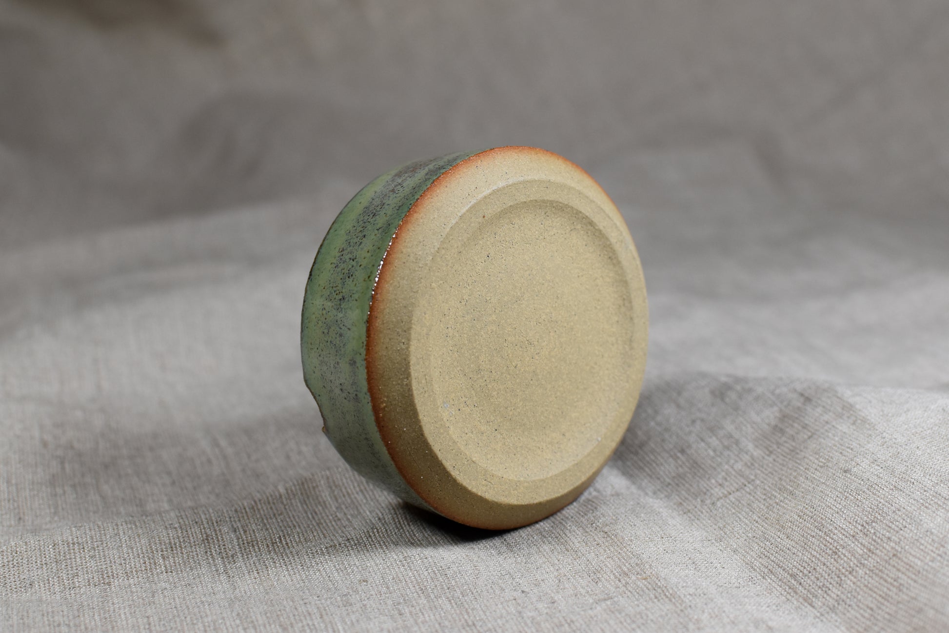 A handmade stoneware ashtray with a weighted base and thoughtfully carved grooves.